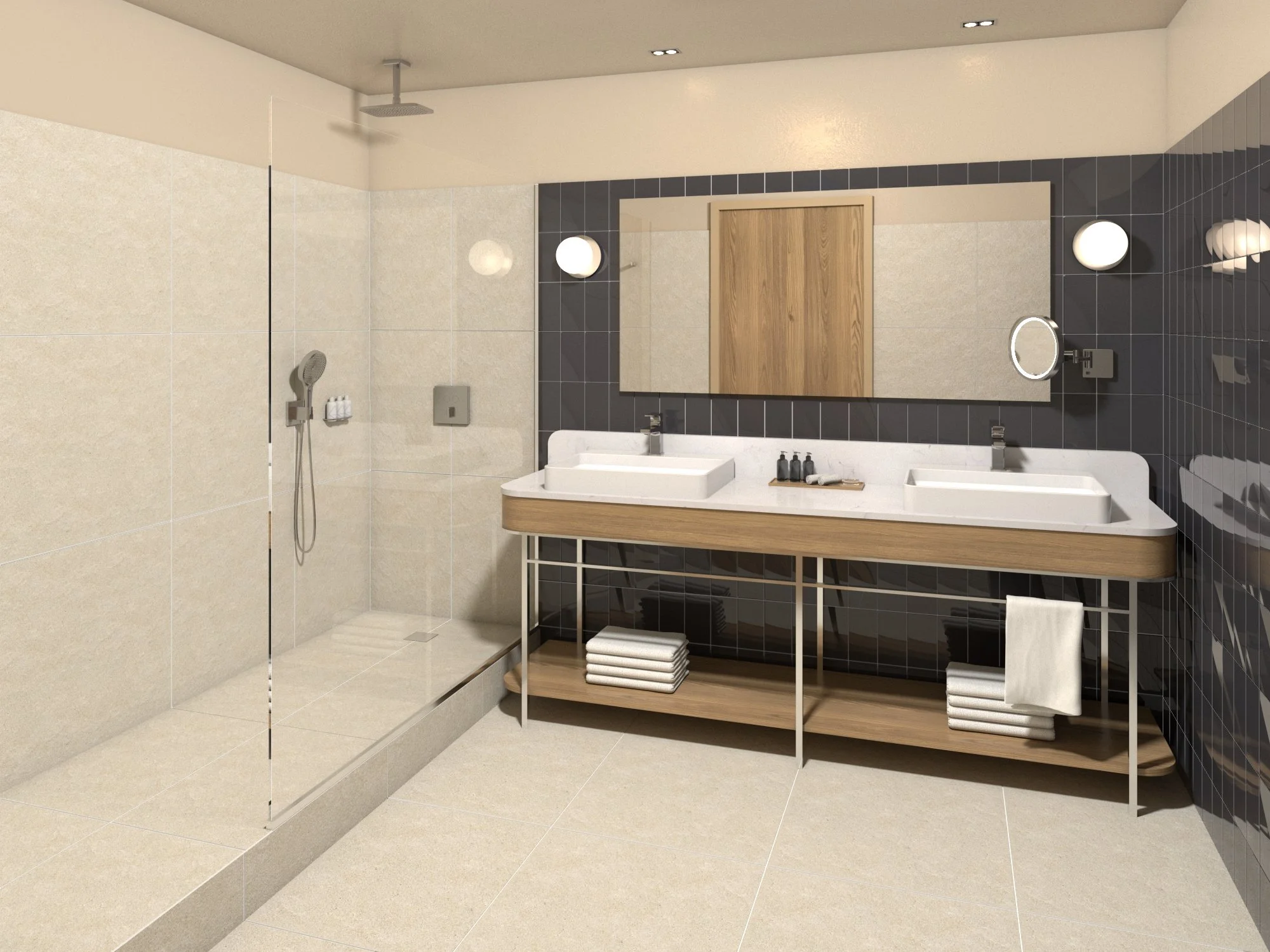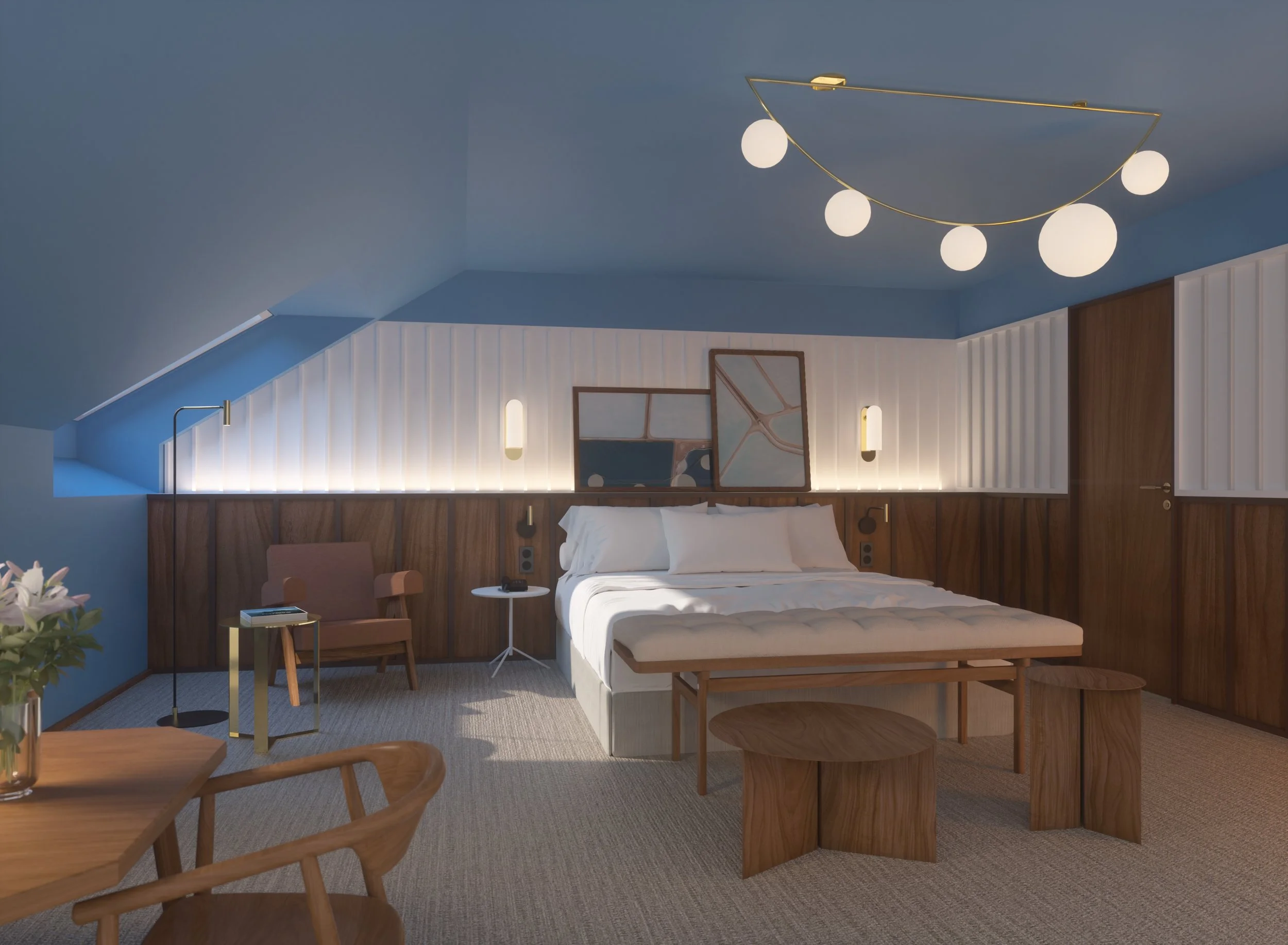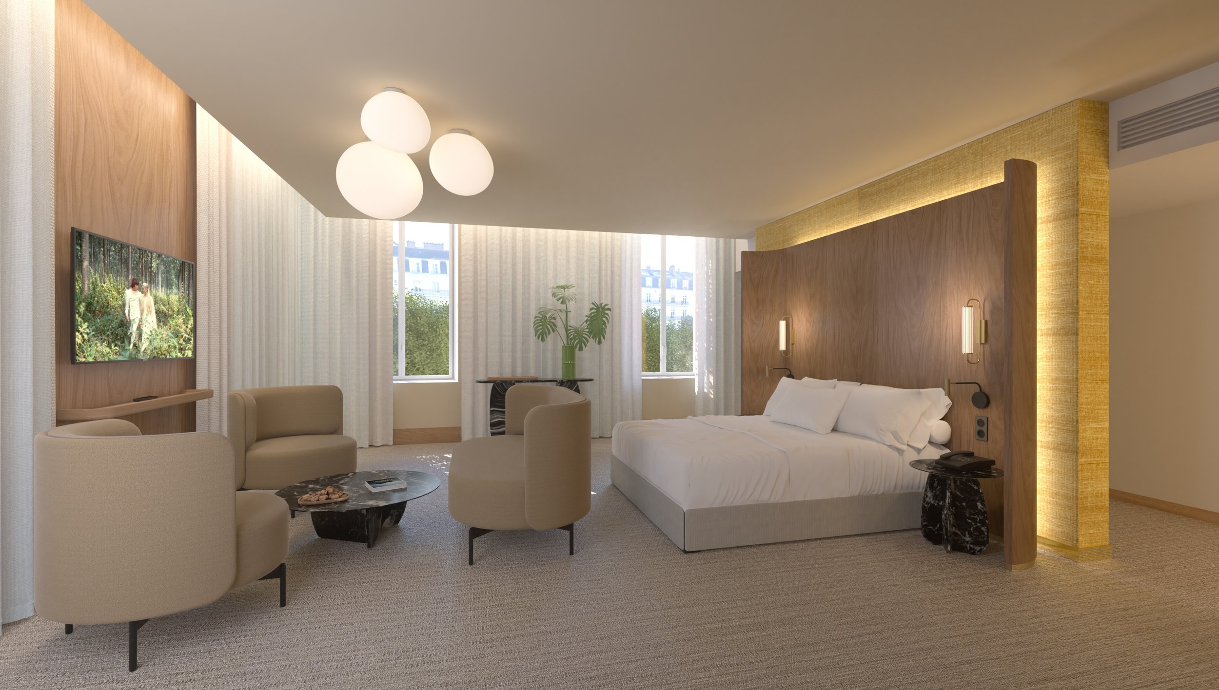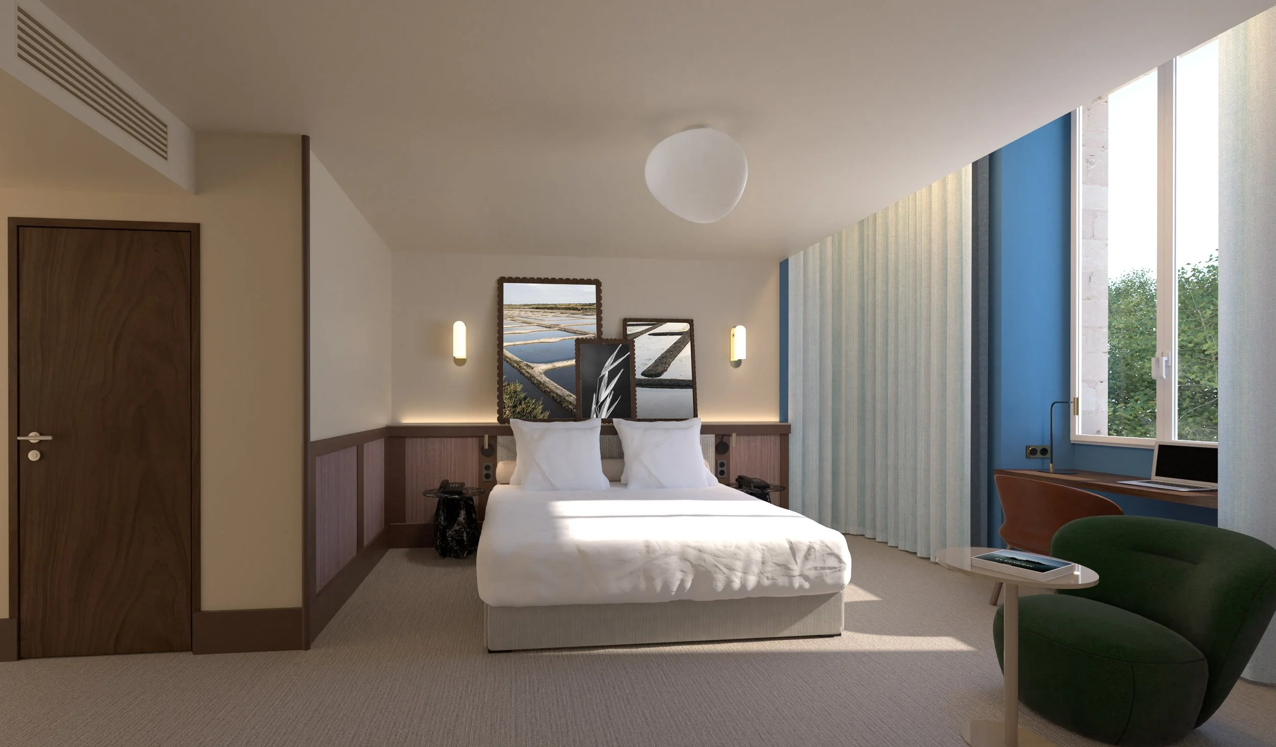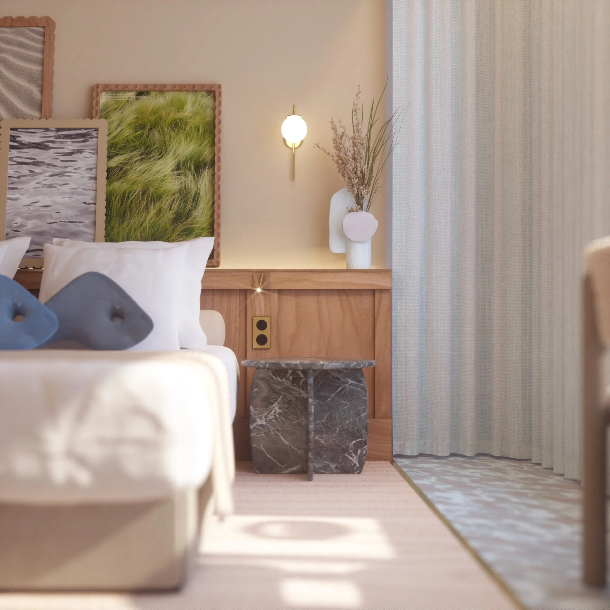 Le concept "Terre et Mer" est une approche inspirante qui cherche à fusionner les éléments terrestres et maritimes dans un projet architectural. L’idée est de mettre l'accent sur l'incorporation harmonieuse des éléments naturels, tels que l'eau, le bois, la pierre et les plantes, dans le projet. La palette de couleurs utilisée dans le concept "Terre et Mer" est souvent influencée par les teintes naturelles de la terre et de la mer. Des nuances de bleu, de vert, de beige, de gris et de blanc peuvent être choisies. La lumière naturelle joue un rôle crucial dans le concept en rappelant les variations de lumière observées à la fois sur terre et en mer, jouant sur un traitement brillant ou mat, transparence et opacité.